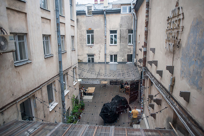 — Объект — огромный по площади, около 1700 квадратных метров, включая подвалы и чердаки, — был совершенно заброшен. Он, очевидно, висел на балансе компании и приносил только убытки. Теоретически, чтобы делать здесь что-то коммерчески привлекательное, нужно было бы много чего сломать, а это точно не понравилось бы КГИОП. Да и вложения были бы огромными. Кроме того, здесь проблема с парковкой, что для нас не имеет значения: мы все на велосипедах. Фактически мы предложили владельцам здания схему минимизации их убытков, что тоже их привлекло.