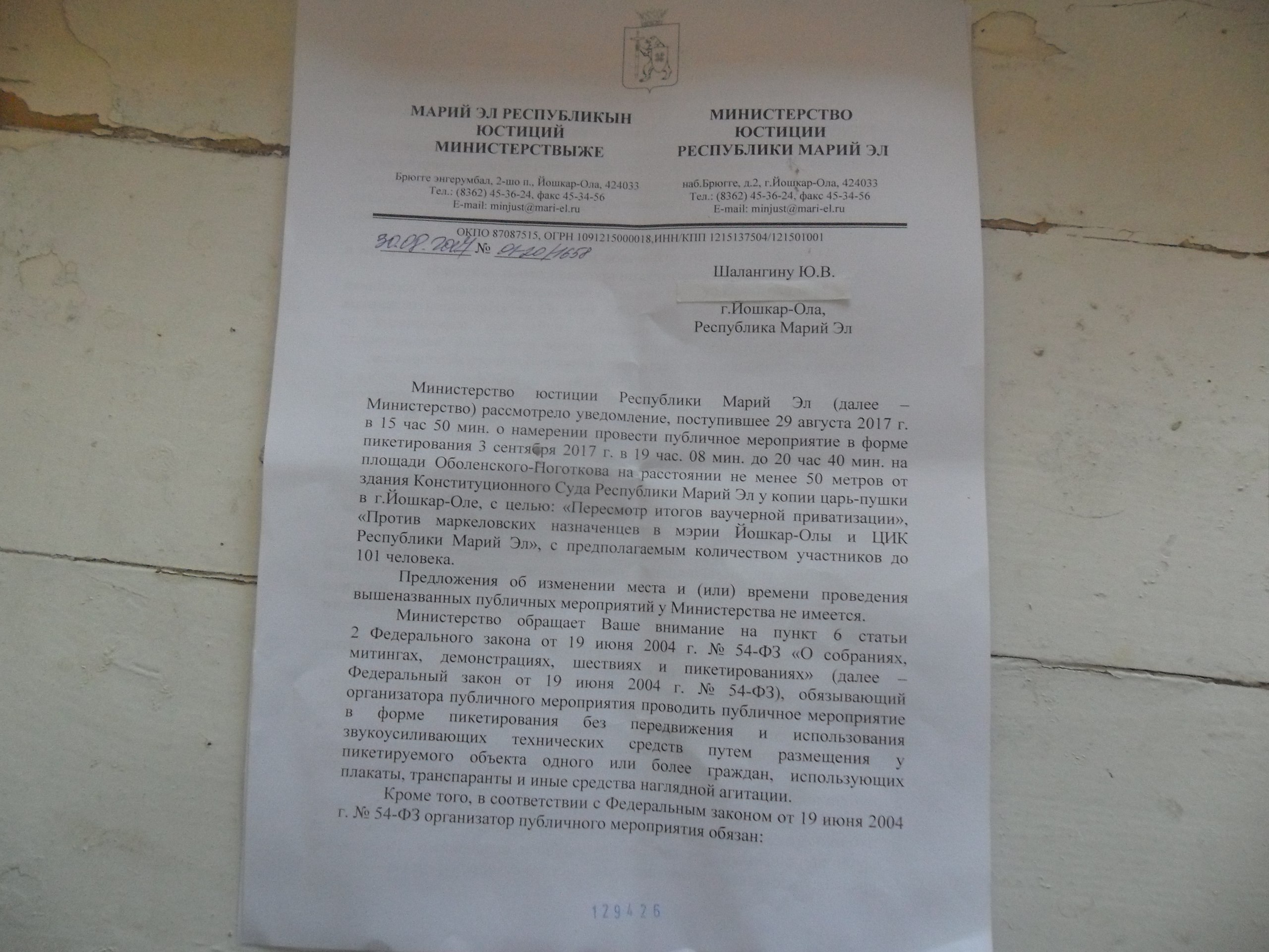 3 сентября в 19 час. 08 мин. состоится протест - пикетирование за пересмотр итогов ваучерной приватизции и критикой мэра Йошкар - Олы и Центральной Избирательной комиссии РМЭ. Почему так поздно? А в остальное время, по их объяснению, все площади заняты предвыборной агитацией кандидатов. Просим поддержать наш протест. Приглашаем всех кандидатов в Главы Марий Эл- Смышляева А., Семёнова Н., Евстифеева А., Фёдорова А., Глущенко Н. , Злобину В. чтобы услышать их мнение о приватизации. А также приглашаем партии, общественные движения и всех неравнодушных граждан.