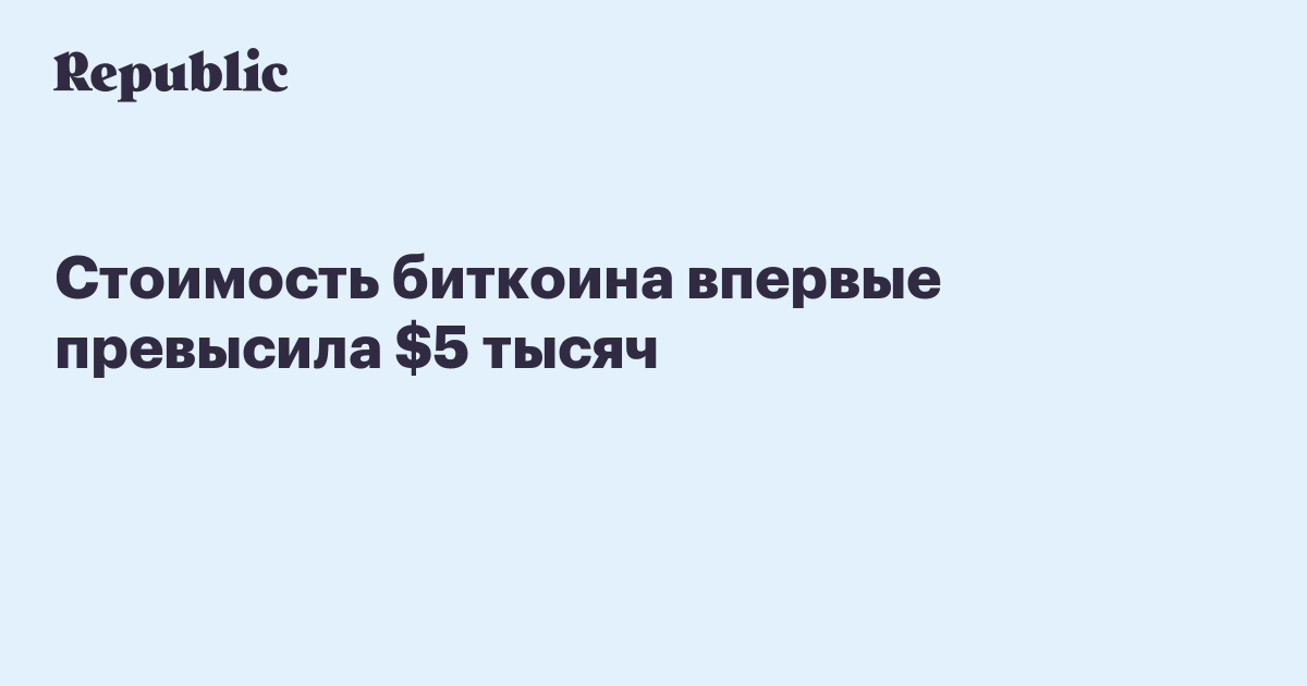 Стоимость биткоина впервые превысилa $5 тысяч, установив новый исторический рекорд, передает CoinDesk.