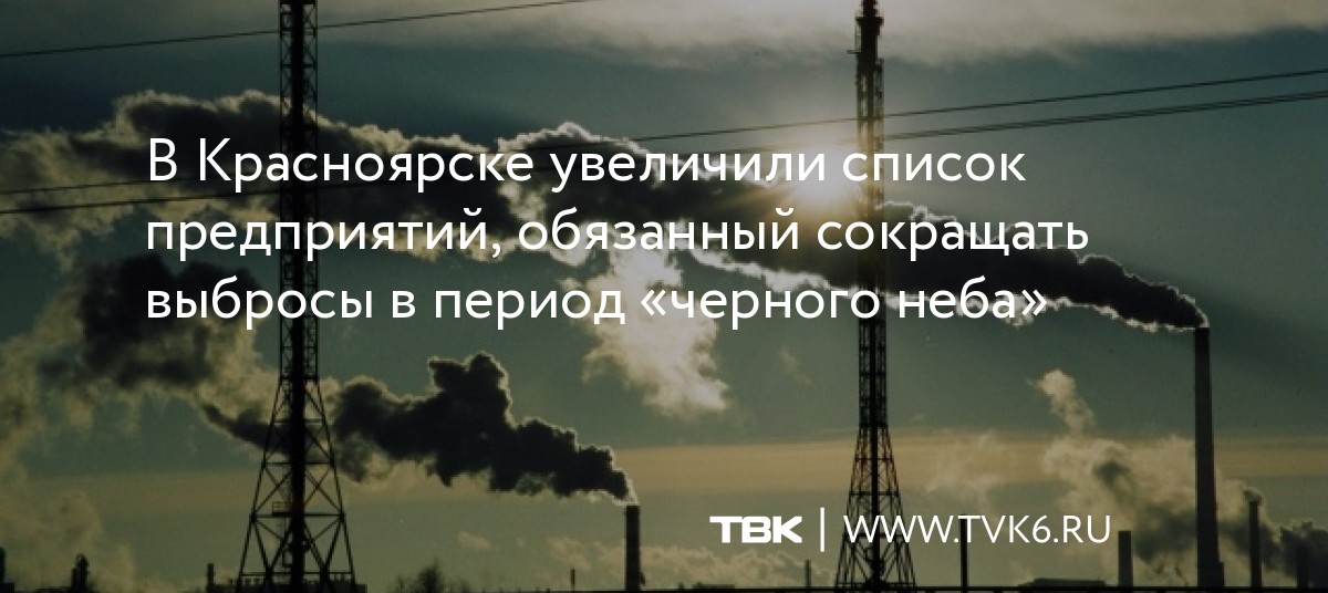 В Красноярске увеличили список предприятий, обязанный сокращать выбросы в период «черного неба»