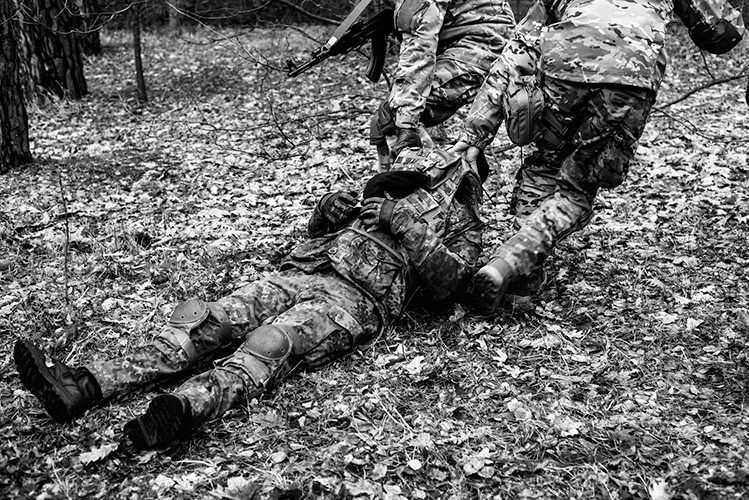 Причем говорит он об этом не раненому, а именно Паше. Будто именно Паше будет больно. Продолжает резать, потом резко и коротко срывает свитер с раны. Боец вскрикивает и вскидывается всем телом.