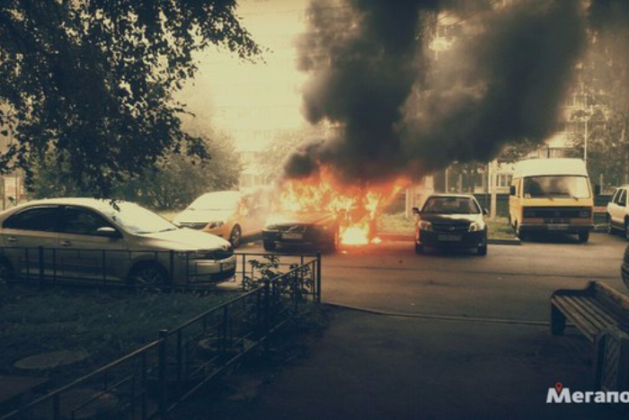 Во дворе жилого дома на проспекте Просвещения взорвался автомобиль, сообщают очевидцы в группе «ДТП и ЧП». Частично расплавились две стоявшие рядом машины.