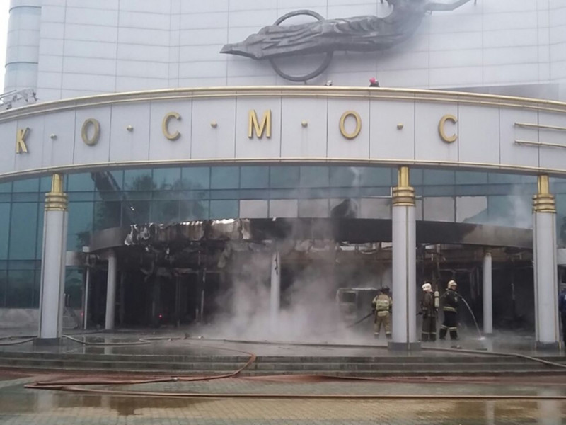 Ранним утром 4 сентября 39-летний Денис Мурашов на автомобиле УАЗ протаранил центральный вход кинотеатра "Космос" и бросил в здание бутылку с "коктейлем Молотова", в результате чего произошел пожар. Сообщалось, что в машине находились 200-литровые бочки с бензином и три газовых баллона, взрыва которых удалось избежать благодаря действиям пожарных. Площадь возгорания составила около 30 квадратных метров, огонь удалось потушить за полчаса. Никто не пострадал, кроме Мурашова, которого задержали, когда он обратился за медицинской помощью.