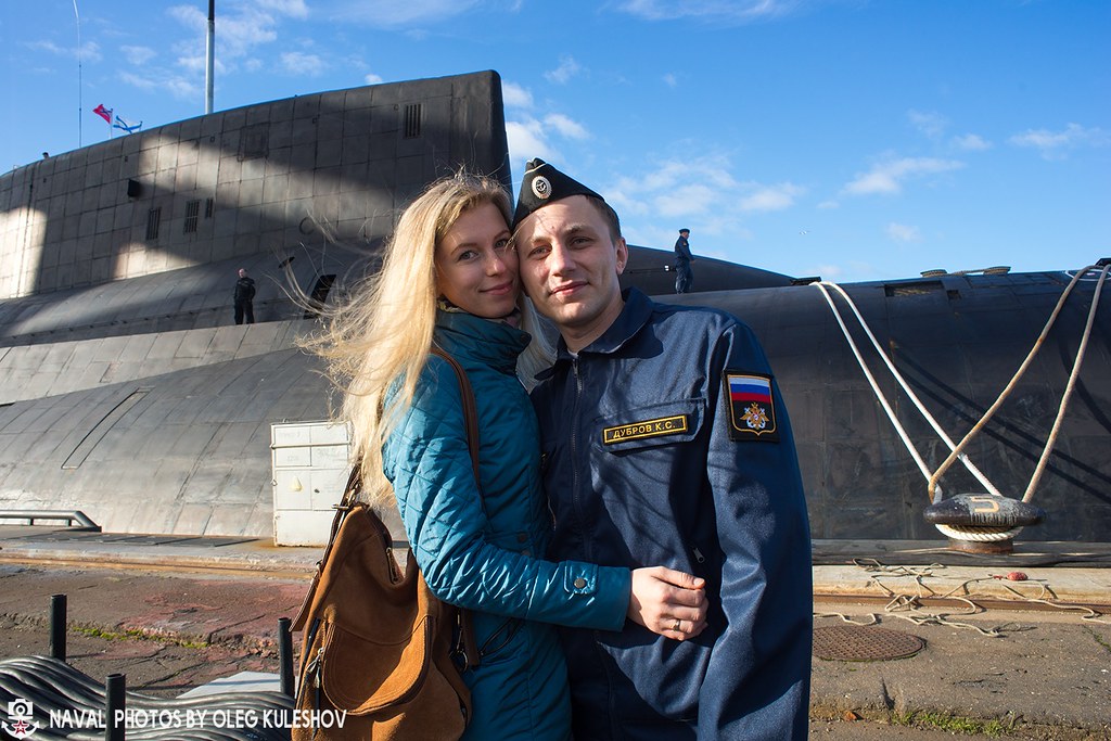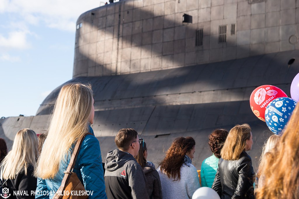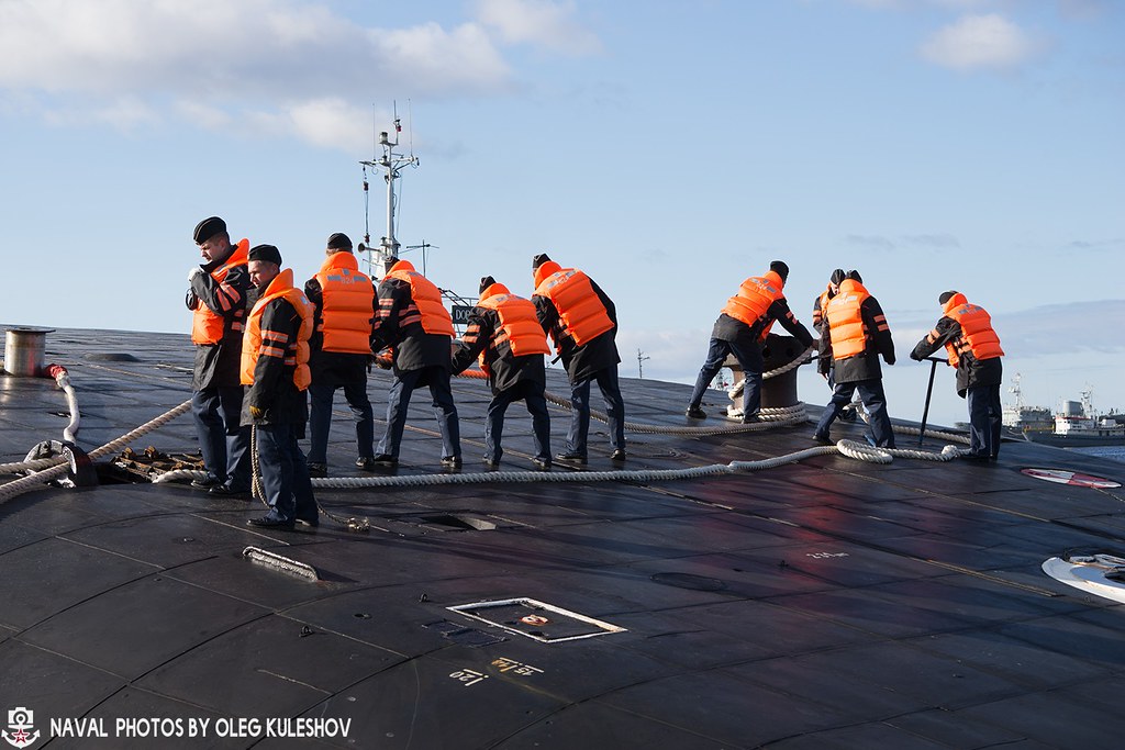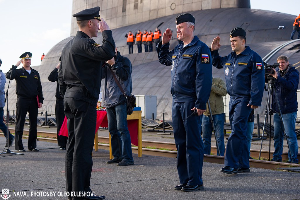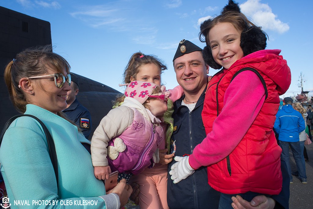 На причале экипаж подводного крейсера встречал командир Беломорской Военно-морской базы контр-адмирал Аркадий Романов, который в своё время им командовал. Также подводников встречали их семьи, с которыми они не виделись с весны.