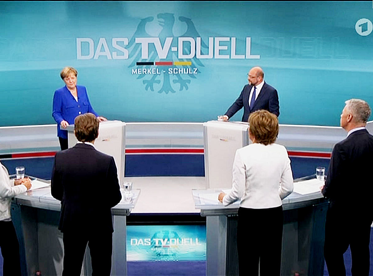 Предвыборные теледебаты претендентов на пост канцлера Германии Karl-Ludwig Poggemann Это событие, комментирует автор, разительно отличалось от других недавних громких политических дебатов. Здесь автор вспоминает «балаганную атмосферу» предвыборной полемики между Дональдом Трампом, в итоге ставшим президентом США, и кандидатом от демократов Хиллари Клинтон; агрессивный тон британских политических дискуссий; и «ледяную конфронтацию» нынешнего президента Франции Эммануэля Макрона и его оппонентки на выборах Марин Ле Пен. Вместо этого на немецких дебатах царила обходительность и рациональный обмен мнениями. В таком тоне оппоненты обсудили множество вопросов — начиная с миграционного кризиса и заканчивая отношениями с Турцией.