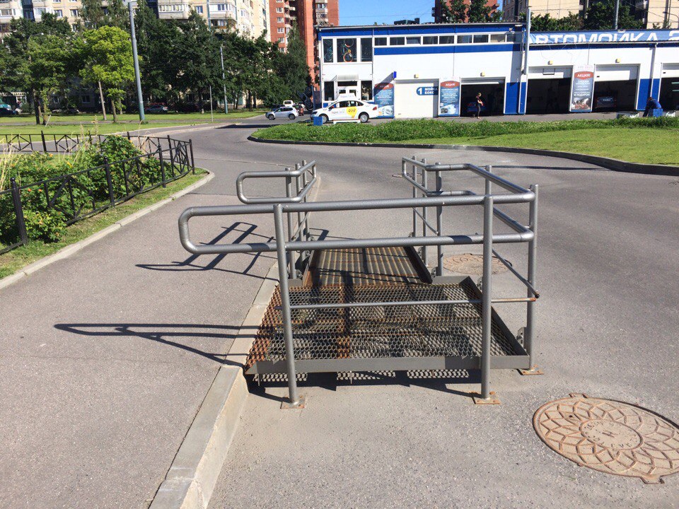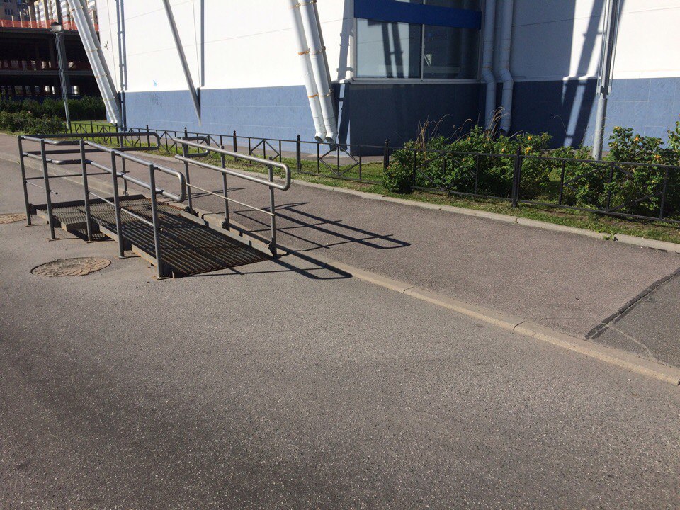 Рядом с бассейном «Газпрома» установили пандус прямо на проезжей части.
