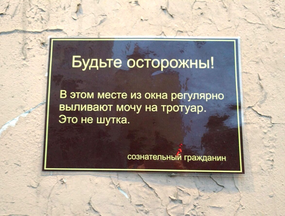 Эту табличку горожане заметили в июне 2017 года. Сейчас ее уже убрали, но прекратили ли прохожих поливать мочой, неизвестно.