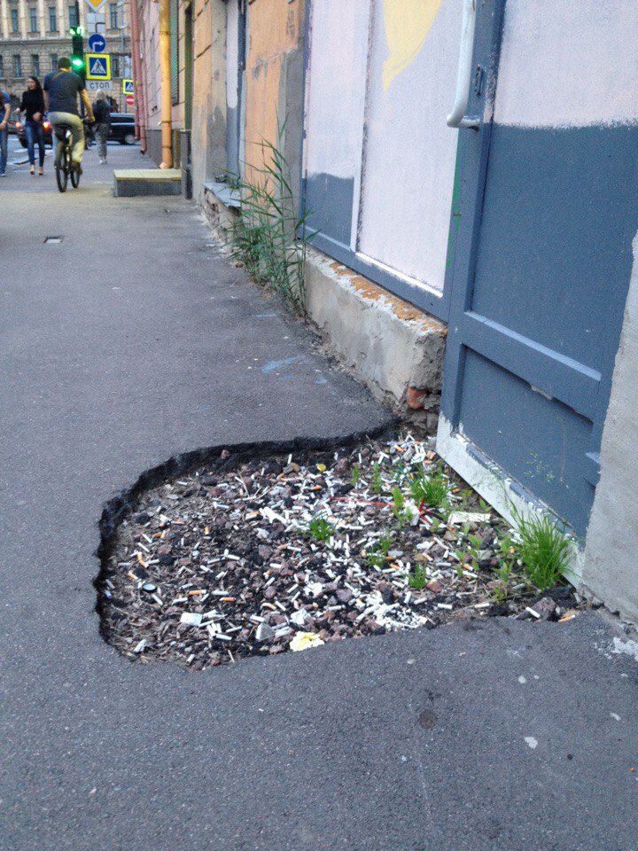 Активисты в Центральном районе жаловались на яму в асфальте, куда горожане массово бросали окурки. Спустя некоторое время яму всё же заасфальтировали, но при этом перекрыли часть двери одного из зданий. По мнению активистов, открыть ее теперь будет невозможно.