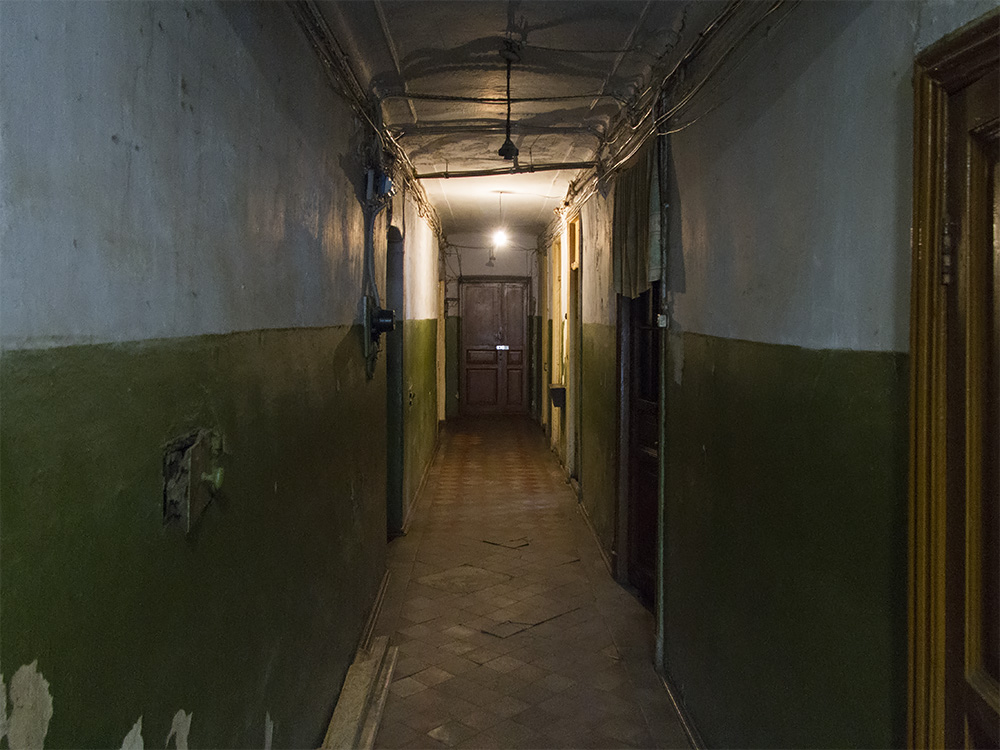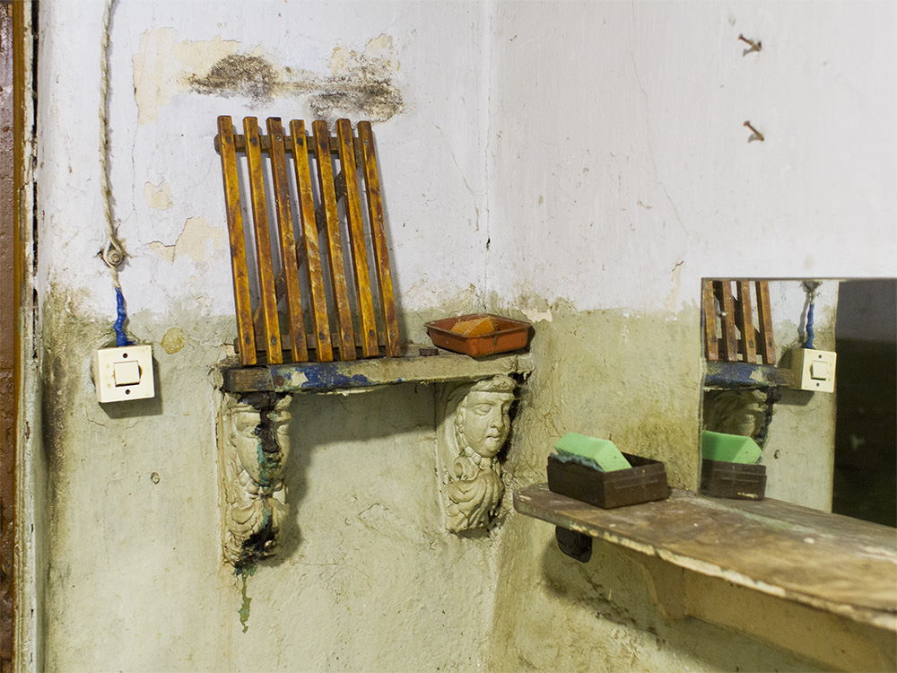 Но главный минус — это вода. Во всей коммуналке предусмотрена только холодная вода и нет даже помещения под душ. На всю коммуналку три раковины, в двух из которых напор такой, что ведро наполняется за час. Насколько я знаю, проводить воду [в квартиры] запрещено, душ ставить незаконно, стиральную машинку тоже.