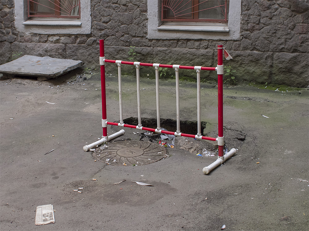 У нас здесь есть система подвесных дворов. Это значит, что под двором есть еще пространство, раньше там хранили уголь, дрова, потом перестали использовать, наконец провели коммуникации, водопровод. В итоге они начали проваливаться, а секрет их изготовления, как выяснилось, был утерян. Никто их не может отремонтировать. Вроде как нас включили в какую-то программу на 2018 год, чтобы привести эти дворы в порядок.