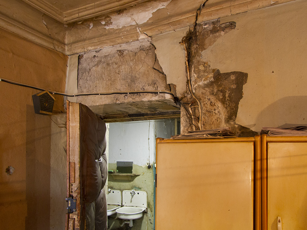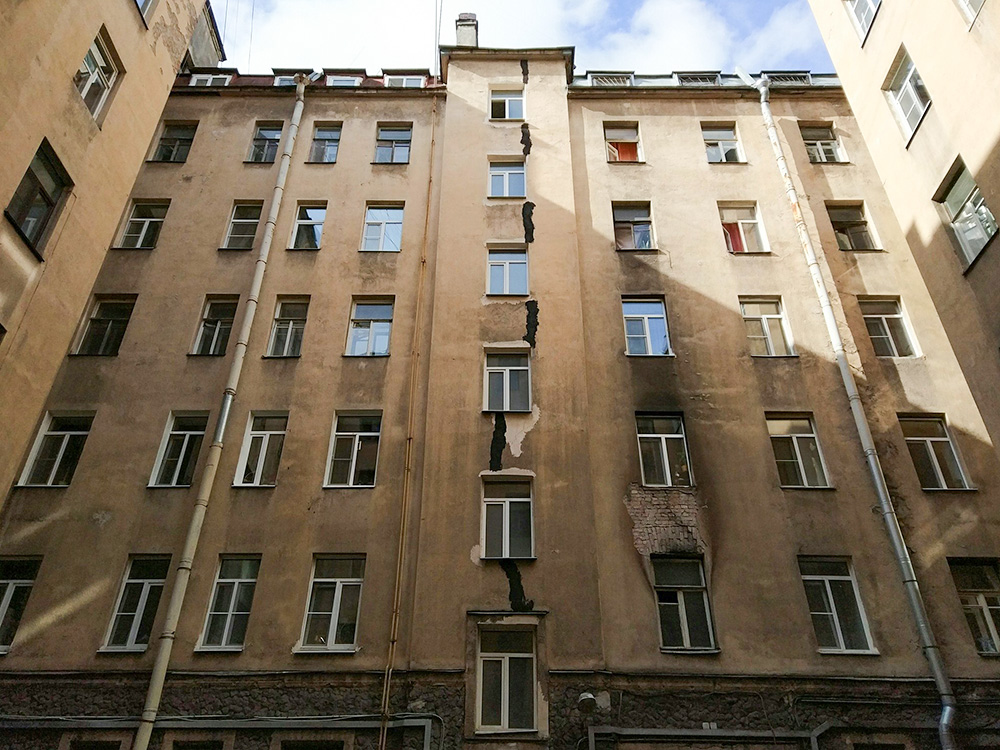 Особенно дом подкосила история с котлованом, на месте которого сейчас стоит «Галерея». Поскольку Лиговский проспект — это бывший Лиговский канал (канал был заложен на месте нынешнего Лиговского проспекта в начале XVIII века и почти полностью высушен к середине XX века — прим. «Бумаги»), тут много воды. И когда отрыли котлован, получилось такое «озеро» — и дома начали «сползать» в яму, пошли трещины. Когда начали строить «Галерею», дом тоже стало трясти. Со стороны, которая ближе к «Галерее», трещины такие, что руку можно просунуть насквозь.