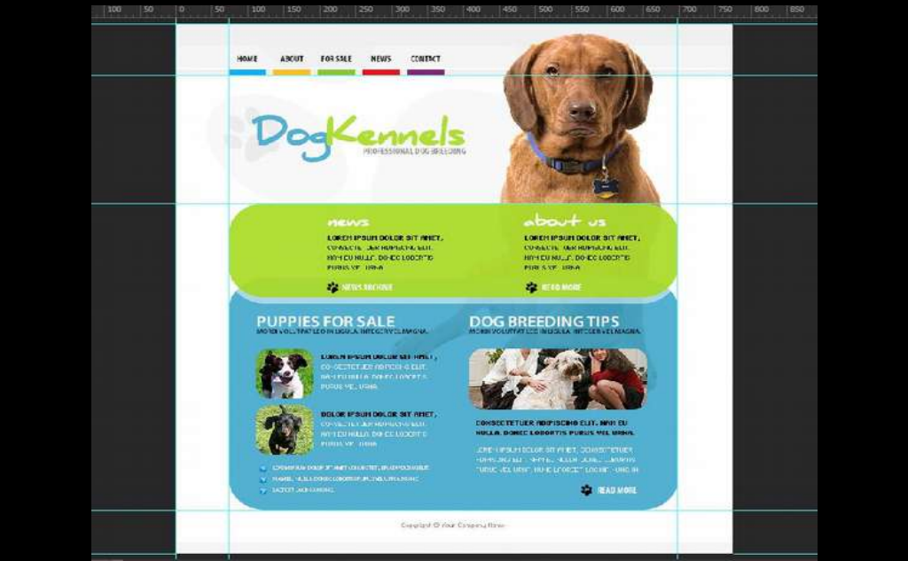 - Используйте направляющие. Выравнивание по направляющим всех значимых элементов – признак обдуманного дизайна. Направляющих не должно быть слишком много, желательно не более четырех.