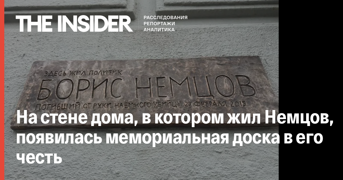 На стене дома в центре Москвы, где жил политик Борис Немцов, была установлена табличка с надписью «Здесь жил политик Борис Немцов, погибший от руки наемного убийцы 27 февраля 2015». Об этом сообщил журналист Сергей Пархоменко в фейсбуке.