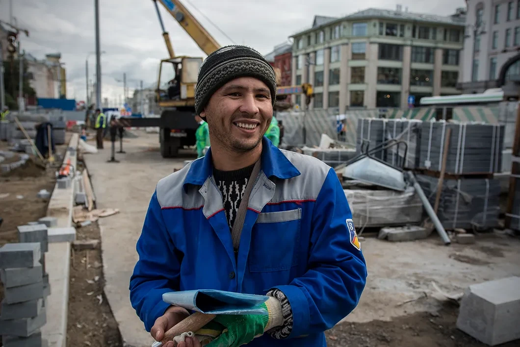 Садриддин Эрданаев, 28 лет, Узбекистан. Специальность: укладчик тротуарной плитки. Фотопроект «Москвичи»