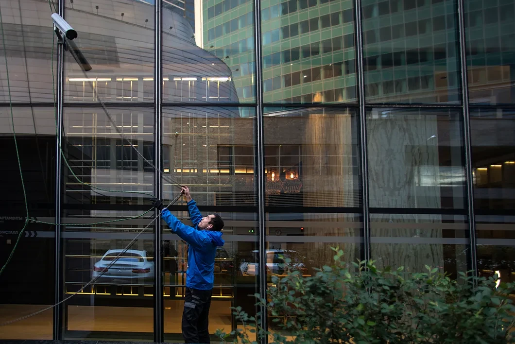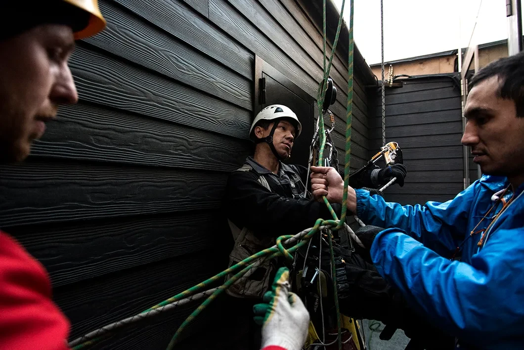 Жена моя тоже «висела», очень просилась со мной работать. Я отговаривал, но потом все же начал обучать. Она быстро научилась, но ей трудно вывешивать веревки, носить тяжести. Это делаю я. А она моет окна очень быстро, и ей очень нравится.