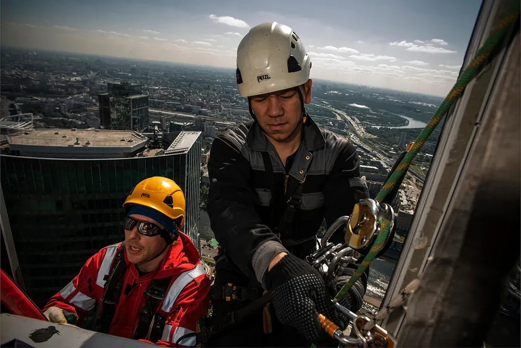 Отабек Муратов, 33 года, Узбекистан. Специальность: промышленный альпинист. Фотопроект «Москвичи»