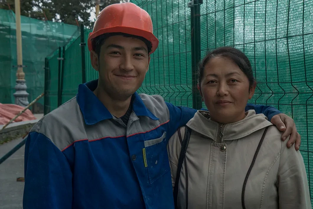 Москвага үй-бүлөлүк шарттарга байланыштуу көчүп келип калдык: ал жакта жумуш көйгөйү бар, ишке орношконго болот, бирок эч нерсе иштеп таба албайсың. Мен болсо үй-бүлөм үчүн иштеп жатам. Бул жерде баары эле ошондой. Балдарыбыз окуп жатышат, биз болсо качандыр бир кезде бизде дагы маяна жакшы болот, жумуштар жакшы болот деген үмүттөбүз. Бул жерде айлыгыбыз жаман эмес, жакшы төлөшөт, отуздан ашык алабыз. 20 миңин жөнөтөбүз, ону өзүбүзгө. Биз уулум экөөбүз жана сиңдим болуп эки бөлмөлүү батирде турабыз. Уулум училищени бүтүрүп, кечээ жакында эле келди, менин беш балам бар, калгандары мектепте окушат. Жолдошум жок.