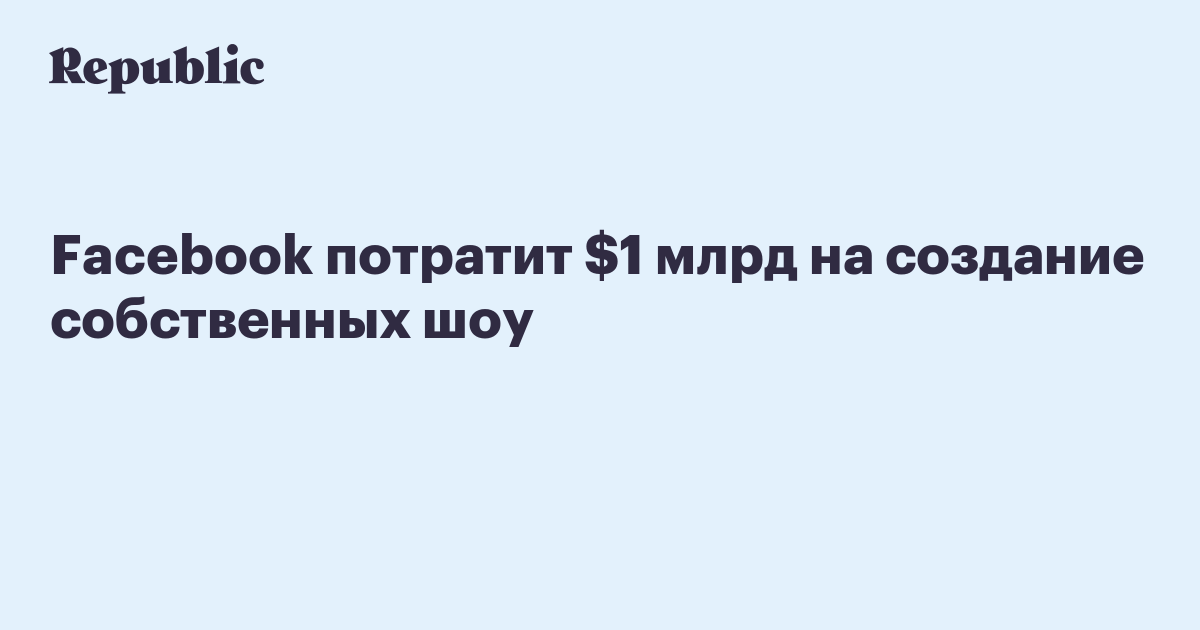 Facebook планирует вложить $1 млрд в производство собственного видеоконтента для своей платформы. Об этом сообщает The Wall Street Journal со ссылкой на источники.