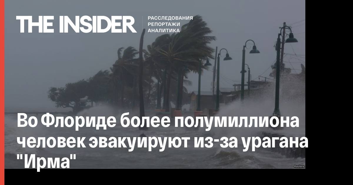 Власти штата Флорида распорядились эвакуировать более 500 тысяч человек в связи с приближением сильнейшего урагана «Ирма». Об этом сообщает AP.