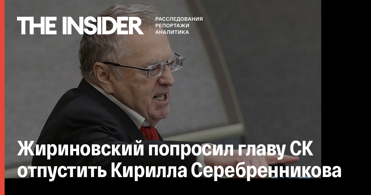 Лидер ЛДПР Владимир Жириновский обратился к главе Следственного комитета Александру Бастрыкину с письмом, в котором просит отпустить из-под домашнего ареста режиссера Кирилла Серебренникова. Письмо политика опубликовало РБК.