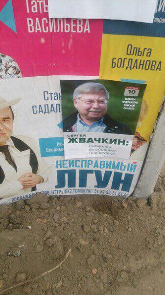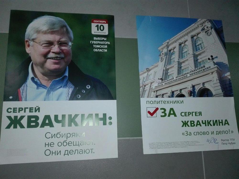 Поначалу эти кандидатуры вели борьбу за кресло губернатора довольно вяло. Жвачкин рассказывал о достижениях на посту губернатора, развешивал на каждом углу плакаты «Сибиряки не обещают. Они делают», ставил агитационные кубы с перечислением своих достижений. Ездил по районам, рассказывая, сколько дорог, чистой воды и молодых специалистов появилось в каждом муниципальном образовании.