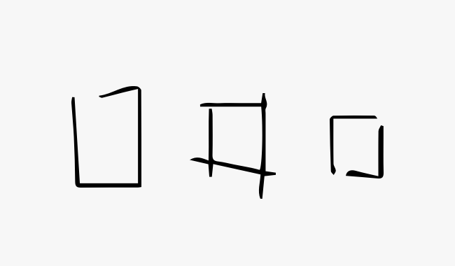 Один иероглиф занимает ровно один квадрат и немного сторонится границ, как грязных стенок лифта. Сколько бы ни было в нем черт, хоть одна, хоть сорок, он весь аккуратно раскладывается в центре — хоть 大, хоть 翻. А графемы внутри иероглифа близки друг к другу, как игроки в твистер. Часто нельзя провести прямую сквозь иероглиф, никого не задев, посмотрите: