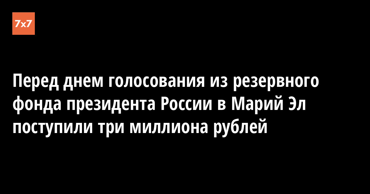 Перед днем голосования из резервного фонда президента России в Марий Эл поступили три миллиона рублей