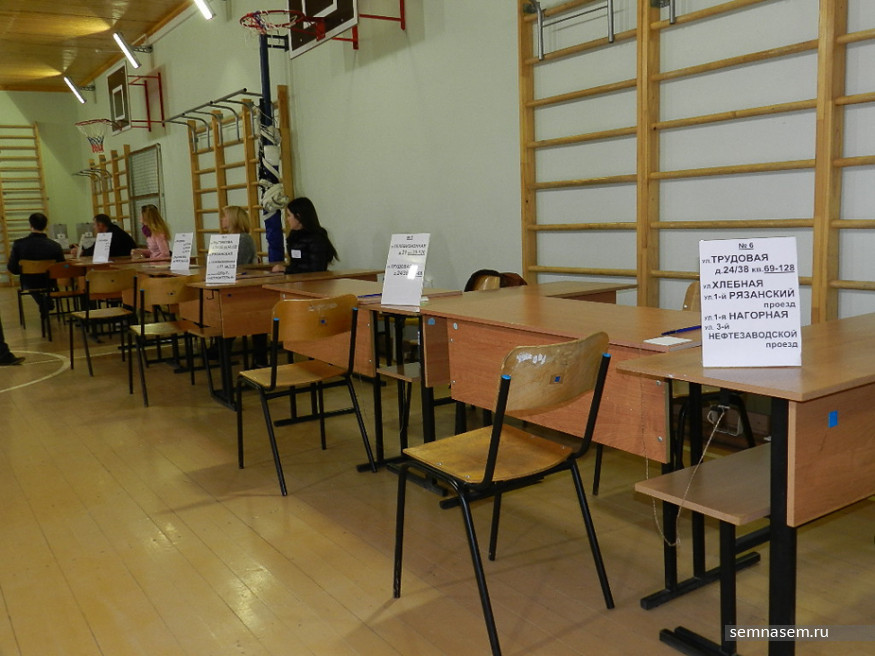 Вокруг школы оживленно: много семейных пар с детьми и полицейских. Утром в рязанских СМИ прошла информация: в одном из гаражей невдалеке от УИК кандидат на пост главы поселения Илья Катаев отмечал в списке избирателей, явившихся на выборы. Наблюдатели вызвали полицейских, те гараж закрыли, Катаев и его сторонники из партии «Единая Россия» покинули свой «наблюдательный пункт».