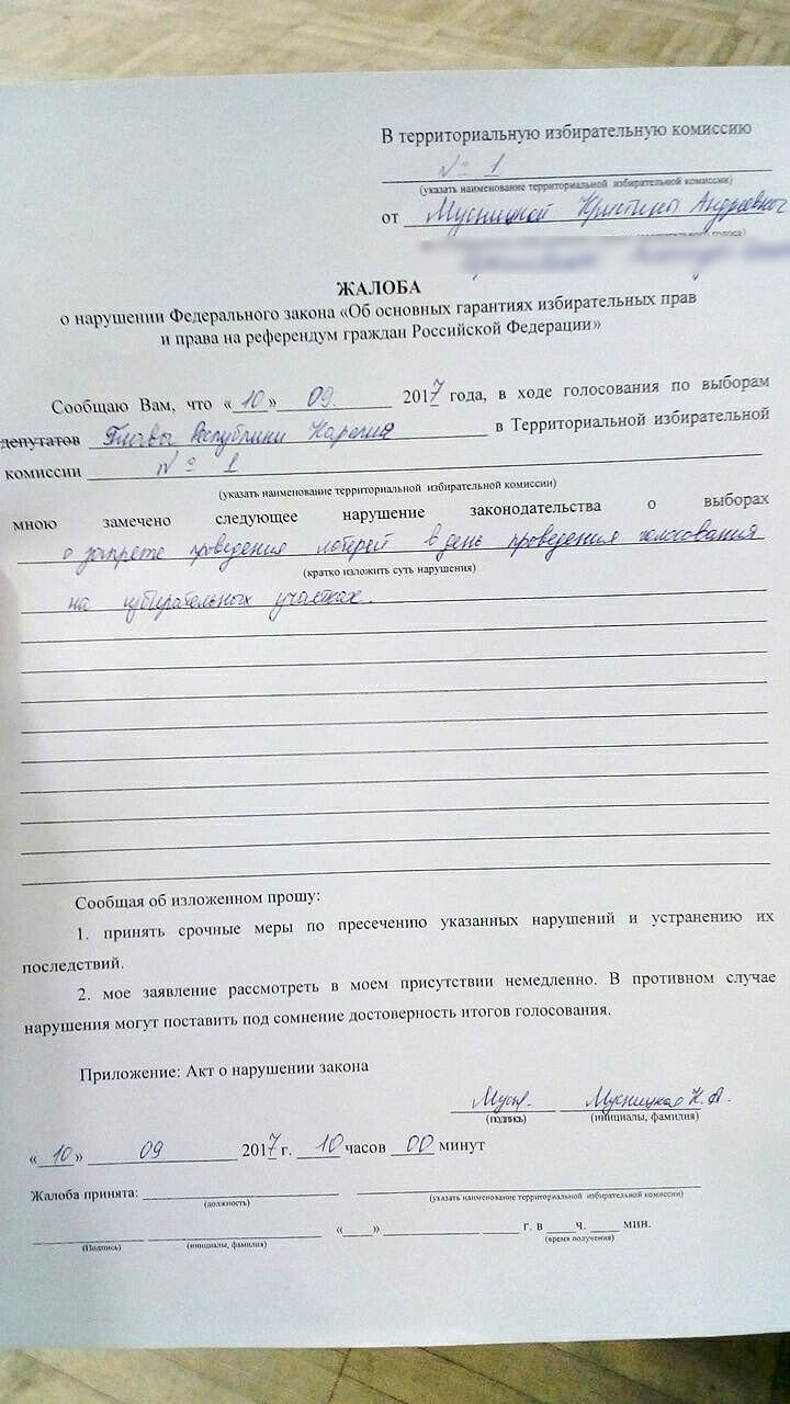 11:17 Наблюдатель от «Голоса», автор жалобы на лотерею, рассказала, что территориальная избирательная комиссия сослалась на то, что у нее нет «группы реагирования». Жалобу приняли в прокуратуре, пообещали разобраться.