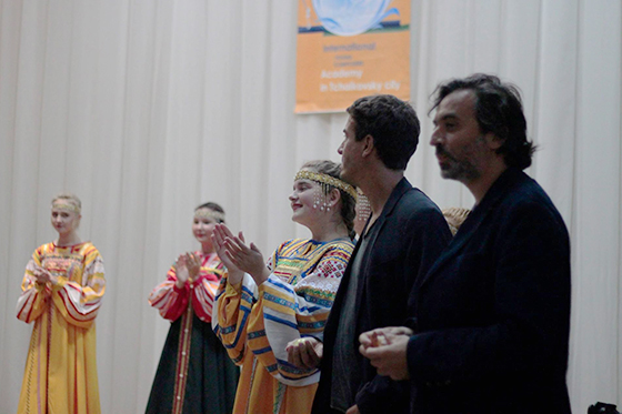 Девушки в народных костюмах и с лентами в волосах танцуют под русскую народную музыку на сцене музыкальной школы. Так начинается открытие VII Международной академии молодых композиторов. «Давайте покажем, как Россия приветствует гостей!» — кричит ведущая в микрофон. Кажется, что сейчас на сцене появится Мария Захарова с сольным номером «Калинка». Но нет, танцы заканчиваются. Ведущая предлагает гостям выйти на сцену, «отведать чайковских яблочек и отломить каравай».