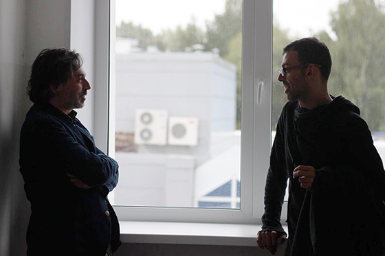 © Саша Елина / Международная академия молодых композиторов Лоренцо Трояни на занятии у Жерома Комбье Вообще же занятия с профессорами академии идут в классах музыкального училища. Под табличкой «Кабинет мировой художественной культуры и музыкальной литературы» написано «Дмитрий Курляндский». Вместе с Курляндским в классе под портретом Чайковского сидит итальянец Лоренцо Трояни, который живет в австрийском Граце. Они слушают сочинение для бас-кларнета. Музыка напоминает саундтрек к фильму ужасов.