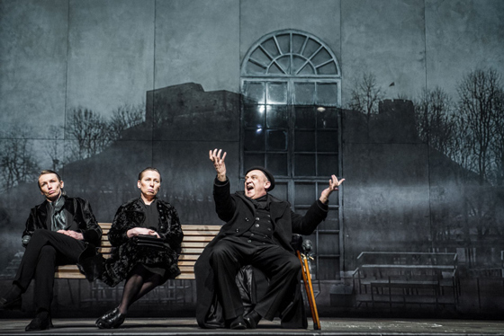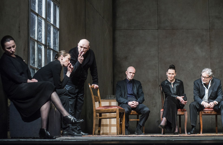 © Александринский театр Привычный стиль взорвется с появлением Роберта Шустера, брата покойного профессора, в блистательном исполнении Валентинаса Масальскиса. Нордически сдержанная кладбищенская беседа двух «сушеных вобл», профессорских дочек, обрывается темпераментным монологом, почти стендапом, обращенным напрямую к залу. Роберт точно знает причину самоубийства брата — тот был не в силах мириться с политической реакцией. «Сейчас в Австрии дела обстоят хуже, чем при Гитлере», — выпаливает старик. Люпа и Масальскис с удовольствием смакуют максимализм текста Бернхарда. Некогда драматург предъявил родине жесткий и бескомпромиссный счет, в монологах Роберта обвинив австрийских политиков 1980-х в ползучей реставрации фашизма, а австрийскую нацию — в почти неприкрытой юдофобии. Пьеса вызвала скандал в Австрии, но Австрия 1980-х не очень волнует режиссера Люпу.