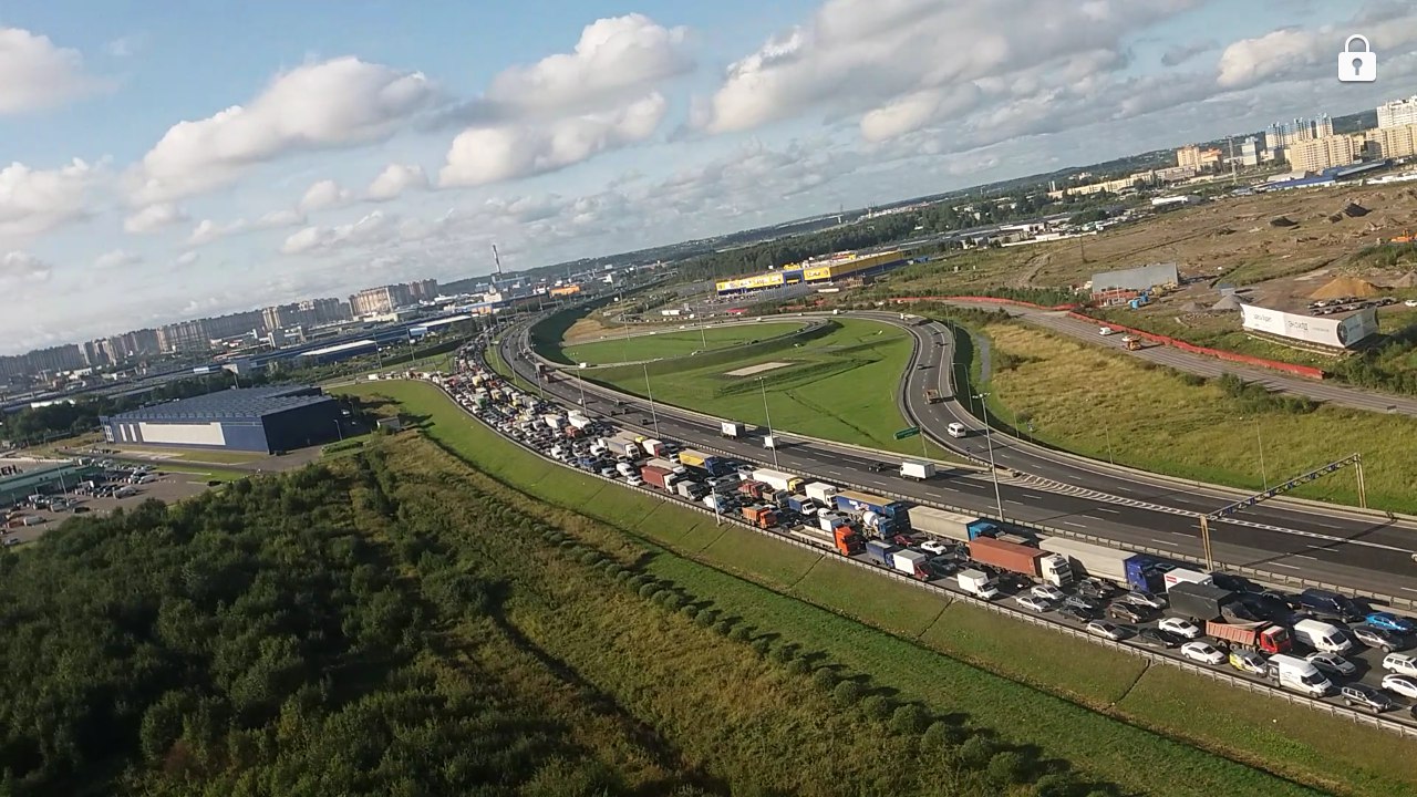 На КАД образовалась огромная пробка из-за ДТП с автобусом