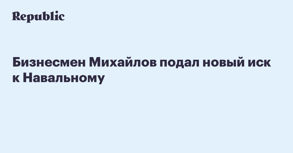 Бизнесмен Сергей Михайлов подал новый иск к оппозиционеру Алексею Навальному и Фонду борьбы с коррупцией (ФБК) из-за статьи об именных часах от президента Владимира Путина. Об этом сообщила пресс-секретарь Люблинского суда Москвы Людмила Морозова, ее цитирует «Интерфакс».