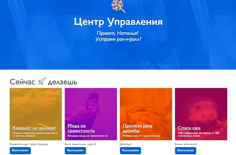 После выполнения акций участнику на электронную почту придет сертификат. Сейчас на сайте доступно 17 акций. Для того чтобы предложить свою идею, нужно пройти небольшой опрос: выбрать тематику, указать формат акции, описать решение проблемы. На сайте указано, что уже выполнено 3 796 добрых дел.