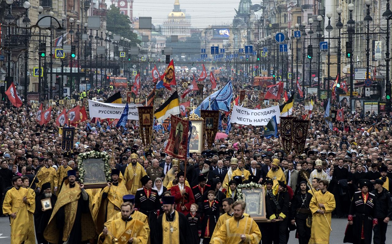 В Санкт-Петербурге прошел ежегодный крестный ход в связи с днем перенесения мощей Александра Невского. Не обошлось без депутата Госдумы Виталия Милонова, а также лозунгов против фильма «Матильда». По Невскому проспекту прошли, как утверждают организаторы, около 100 тысяч человек. Вот как это выглядело: