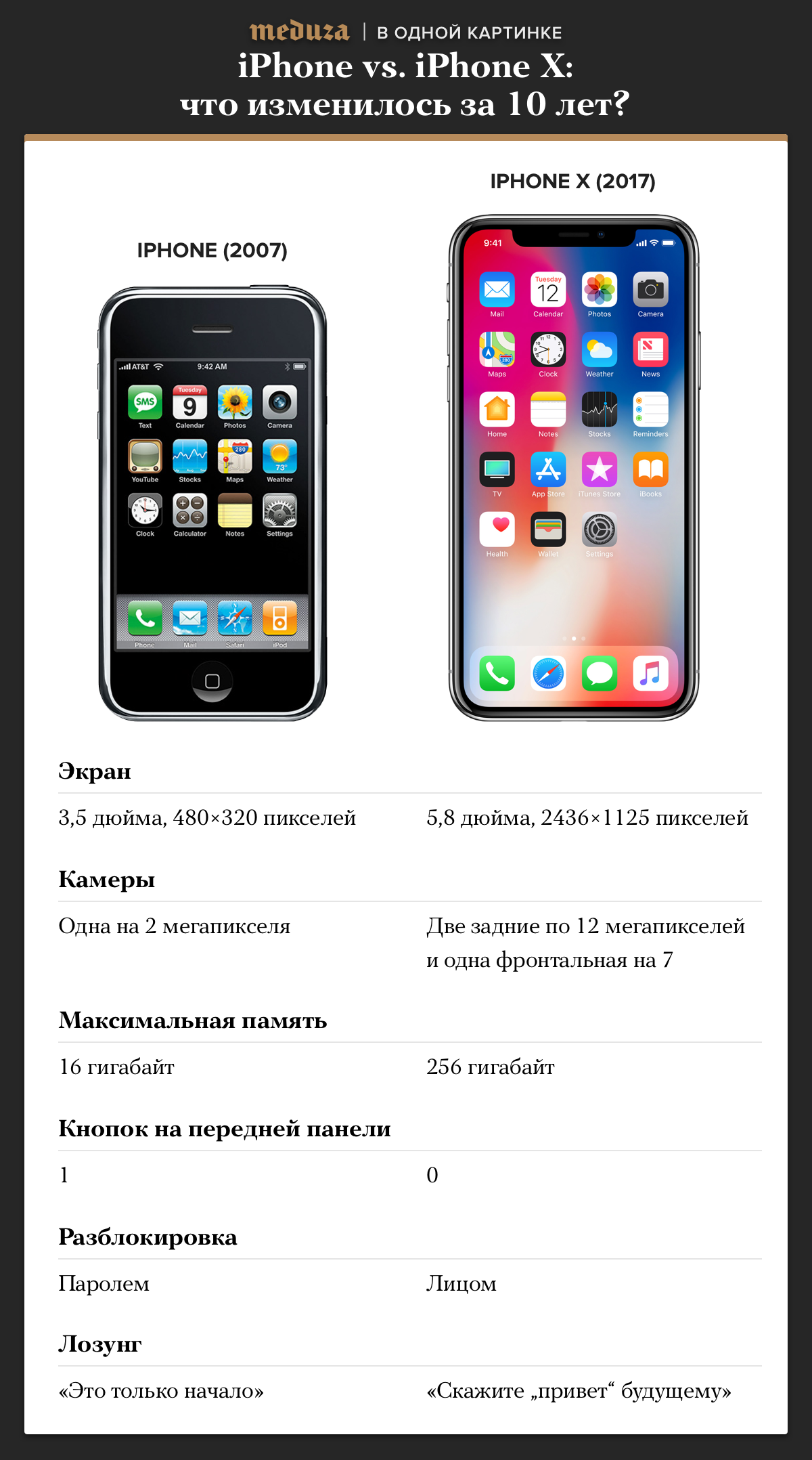 Разница между самым первым айфоном и iPhone X. В одной картинке