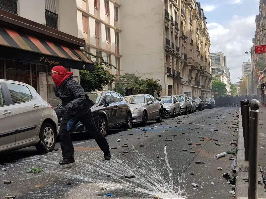 Но спустя примерно час в дело вступила могучая кучка (человек семьсот) анархистов-антифа-антиглобалистов, которые стали атаковать засевших в переулках спецназовцев и жандармов. В щиты «фликов» полетели куски асфальта, камни, бутылки и дымовые шашки.
