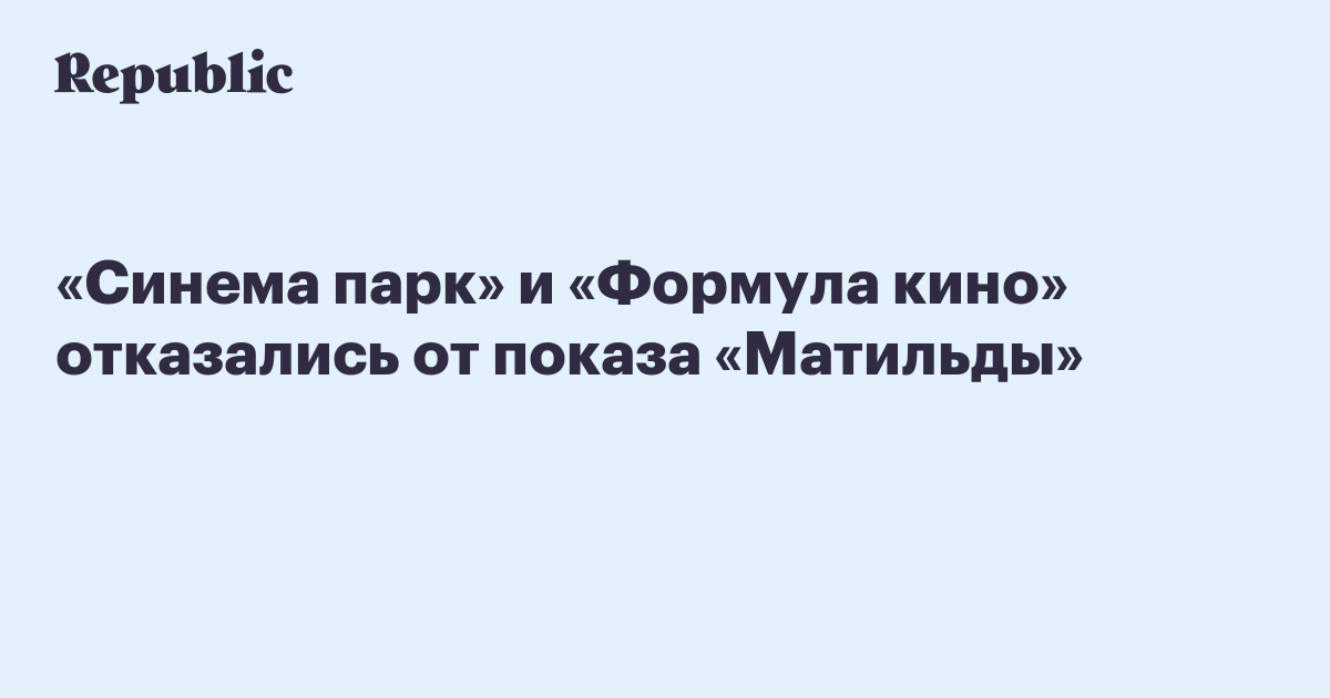 «В связи с неправомерными действиями со стороны противников фильма Алексея Учителя “Матильда”, произошедшими в последние дни в разных городах России, и участившимися угрозами в адрес кинотеатров руководство Объединенный сети “Синема парк” и “Формула кино” приняло решение отказаться от показа кинокартины. Решение связано исключительно с желанием оградить посетителей киносети от рисков, которые влекут за собой публичные показы фильма», – сказано в заявлении пресс-службы.