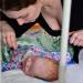 Каждого ребенка врач Таня внимательно осматривает и, главное, ощупывает. Даже если ребенок ничего не может сказать о своем самочувствии, об этом говорит его тело и выражение лица: «Как он дает понять, что ему некомфортно, больно? Он не радуется, он может быть физически напряжен, гримаса боли может быть. Я почему детей все время трогаю? Если что-то болит, он это место убирает, зажимает, мышцы напряжены. Смотри: Тема в сознании, не в коме. Его взяли на ручки, и видно, что это ему нравится, гораздо больше, чем лежать в кровати».