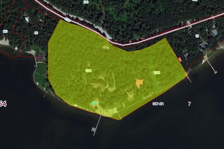 Судя по кадастровой карте на участке земель лесного фонда площадью 6,8 га размещено несколько построек, в том числе большой гостиничный комплекс и открытый бассейн. На территории, кадастровая стоимость которой менее 10 тыс. рублей, разрешено строить культурно-оздоровительные центры. При этом доступ к берегу перекрыт.