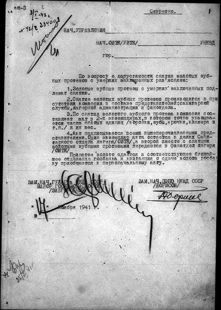 Секретное разъяснение «По вопросу снятия золотых протезов с умерших заключённых»
