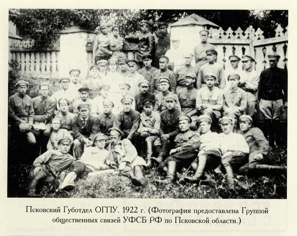Псковский губотдел ОГПУ, 1922 г. (на заднем плане ограда бывшего Старовознесенского монастыря).