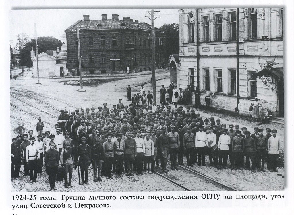 Группа личного состава подразделения ОГПУ, угол улиц Советская и Некрасова (1924-25 гг.).