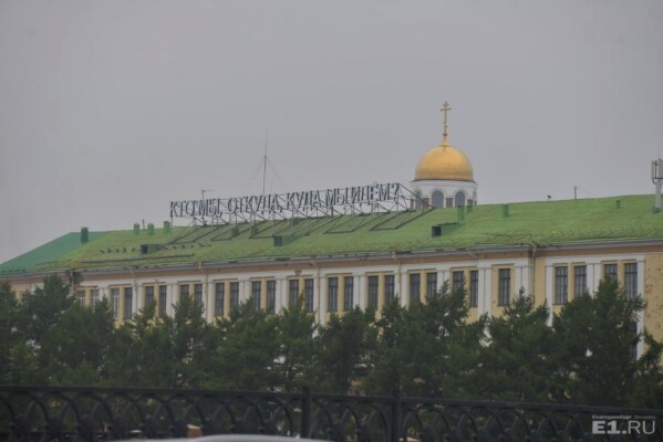 В Екатеринбурге в рамках Уральской индустриальной биеннале появился новый арт-объект — надпись «Кто мы, откуда, куда мы идём». Она расположилась на крыше бывшего приборостроительного завода, где в советские времена стояла вывеска «Слава труду».