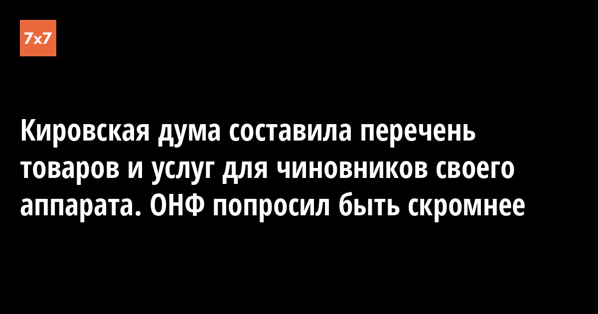 Кировская дума составила перечень товаров и услуг для чиновников своего аппарата. ОНФ попросил быть скромнее