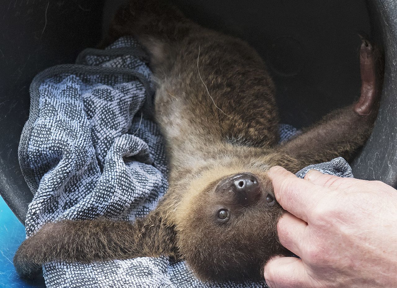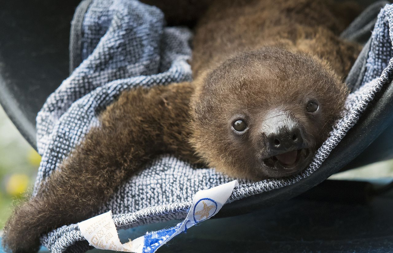 В немецком зоопарке Галле родился ленивец. Он живет в ведре!