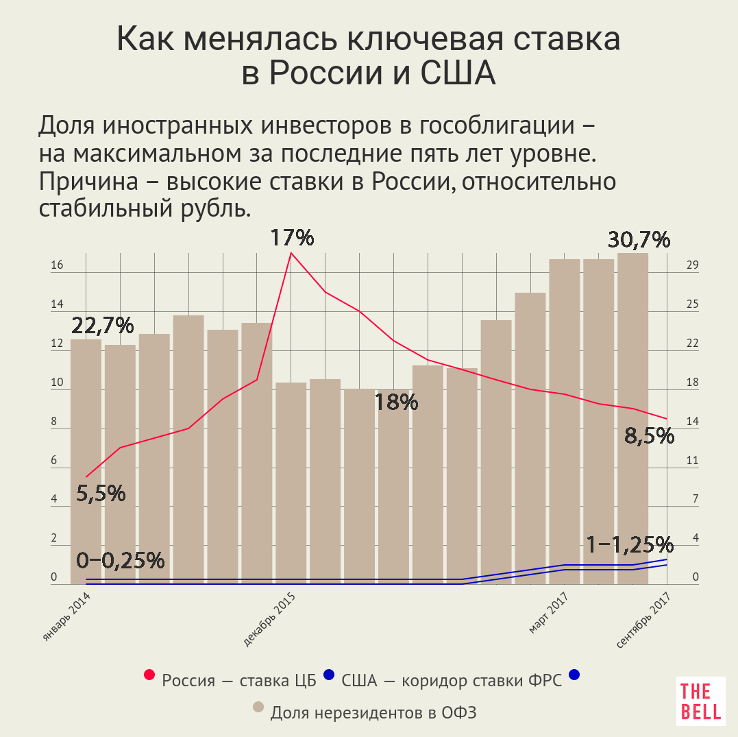 - По словам опрошенных The Bell финансистов, пока иностранным инвесторам еще выгодно держать деньги в рублях. Это значит, что долю валюты в сбережениях увеличивать пока не стоит, но следить за разницей в ставках надо обязательно. Покупать валюту надо будет, когда эта разница приблизится к 5 процентным пунктам, или если колебания курса рубля станут более резкими. Следующее заседание ФРС по ставке намечено на 19-20 сентября.