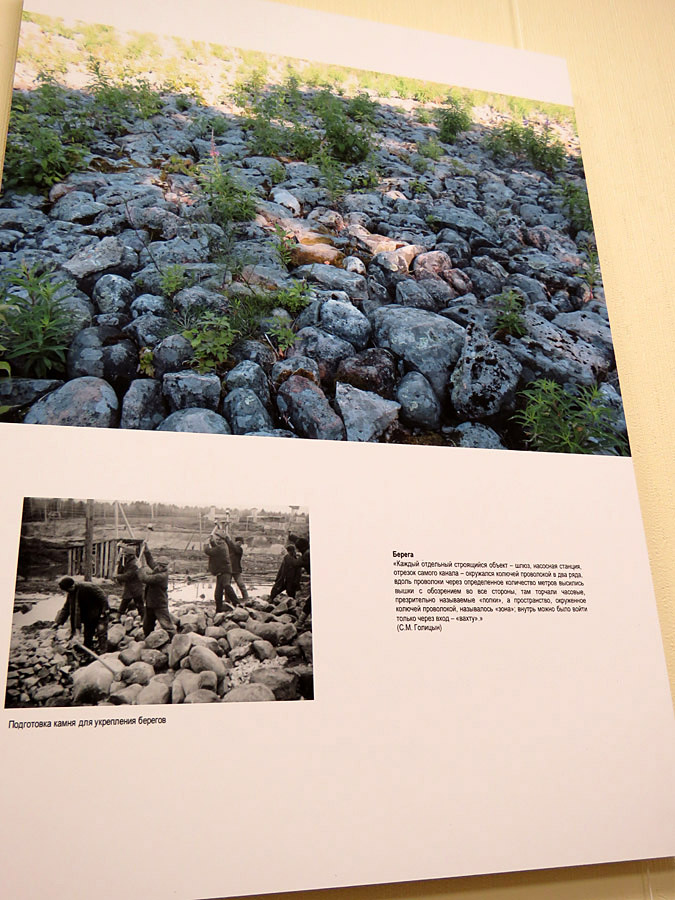 При сопоставлении фотографий, поскольку я использую современные и архивные фото, возникает смещение угла зрения. Мы видим пропагандистский образ канала и понимаем, что в то время, когда фотокамеры были доступны далеко не всем и на объекты строительства самодеятельные фотографы не допускались, большинство кадров, которые имеются в архивах, постановочные. Зэки в белых рубашках нагружают тачки с землей. Естественно, в реальной жизни такого не было. Мы не имеем кадров лагерного быта, которые повествовали бы о том, как жили люди в этих условиях. К сожалению, правдивой информации, которой мы могли бы шокироваться, и сказать, что да, на этом месте мог бы быть каждый, здесь мог бы быть мой дед или моя бабушка, нет. У нас оказывается довольно большое поле для размышлений, но мы не имеем логического материала, который мог бы быть представлен как документ.