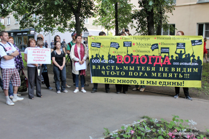 — Самая большая беда в нашем обществе — равнодушие, — говорили вологодские активисты. — В Вологодской области пострадали сотни дольщиков, но все ли они пришли сюда? Нет. Поэтому с нами и делают такие вещи. Занимайте активную гражданскую позицию, отстаивайте ее, будите друзей, знакомых, рассказывайте о нашей беде, не замалчивайте ее. Мы должны быть едины, чтобы отстаивать наши права.